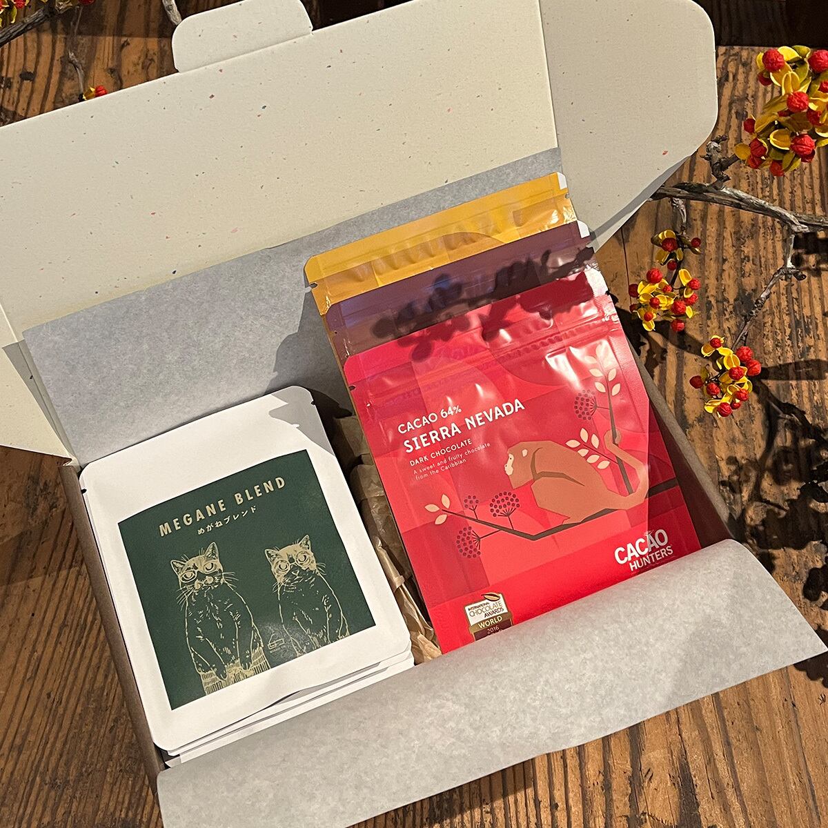 そして、世界的に評価の高い CACAO HUNTERSの本格チョコレートを3種類セットにしました。